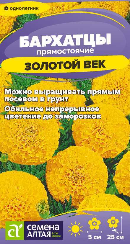 Бархатцы Золотой Век 0,1гр низкорослые прямостоячие /однолетник