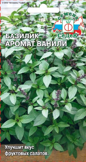 Среднераннее, однолетнее, пряное эфиромасличное травянистое растение высотой до 30 см. Период от полных всходов до начала хозяйственной годности 50-60 дней. Растение низкое, прямостоячее, средней плотности. Лист яйцевидной формы, среднего размера, зеленый, слабопузырчатый, мелкозубчатый по краю. Окраска цветков фиолетовая. Все растение имеет насыщенный пряный аромат с ванильным вкусом. Тепло-, свето- и влаголюбив. Предпочитает плодородные, хорошо дренированные удобренные почвы. Ценность сорта: отличные вкусовые качества, возможность выращивания его в комнатных условиях. Обладает бактерицидным действием. Рекомендуется использовать в свежем и сушеном виде в качестве вкусовой добавки в домашней кулинарии, при консервировании, и для улучшения вкуса фруктовых салатов.