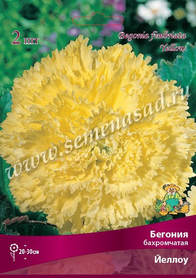 Бегония бахромчатая - отличительным признаком бегонии Фимбриаты являются бахромчатые лепестки, чем-то напоминающие лепестки гвоздики. Они востребованы среди цветоводов по всему миру. Подвид бегоний Фимбриата имеет немало сортов, отличающихся друг от друга всевозможной окраской, размером бутонов и "изрезанностью" лепестков. Йеллоу - высота растения 20-30 см, цвет желтый.