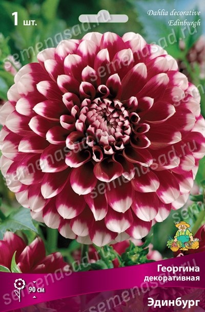 Георгина декоративная Эдинбург — прекрасно подойдет для составления роскошного букета. Цветок притягивает внимание своим необычным сочетанием цветов: глубокая темно-малиновая основа изящно оттеняется легкими белоснежными мазками на кончиках лепестков. Каждый бутон словно драгоценный камень, выделяющийся своей изысканной формой и насыщенным цветом среди остальных растений. Невероятный и яркий сорт Эдинбург идеально подойдет для украшения интерьера вашего сада, дома или офиса, привнося нотку элегантности и шика в любое пространство. Высота растения около 90 см. Цветки диаметром 10-12 см, махровые, шарообразной формы. Цветение обильное и продолжительное, наблюдается с июля по октябрь.