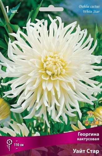 Георгина кактусовая Уайт Стар — воплощение изысканной элегантности в мире садовых растений, способное придать любому пространству благородную утончённость. Георгина формирует плотный и аккуратный куст высотой 90–110 см с прямостоячими побегами, плотно прилегающими друг к другу. Величественные цветки диаметром 15–20 см напоминают сверкающие звёзды, рассыпанные по зелёному небу сада. Сливочно‑белая окраска лепестков с лёгким жемчужным отливом придаёт соцветиям особое благородство — они словно подсвечены изнутри мягким, перламутровым сиянием. Особую изюминку цветкам придают слегка скрученные кончики лепестков, создающие изящную текстуру и объём