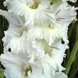 Очень крупный гладиолус, абсолютно белый цветок с великолепными ростовыми качествами