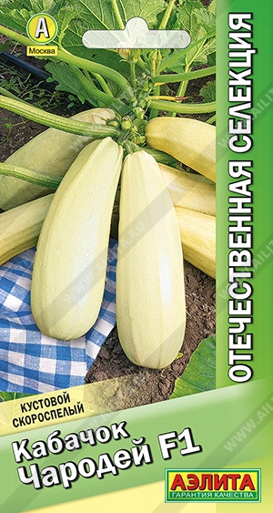 Раннеспелый белоплодный гибрид с рекордно высокой урожайностью. Сбор кабачков начинают на 37-42 день после всходов. Растения кустовые, компактные. Плоды массой 0,4-0,8 кг. Мякоть белая, нежная, плотная. Вкусовые и товарные качества высокие. Кабачки отлично подходят для различной кулинарии и приготовления икры. Гибрид устойчив к мучнистой росе и ВОМ-1. Урожайность: 9-10 кг/м 2 , при хорошем уходе – 15-20 кг/м 2 . В серии собраны перспективные сорта и гибриды отечественной селекции.