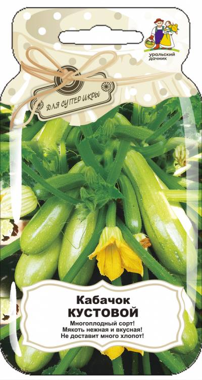 Раннеспелый, кустовой, урожайный сорт. В плодоношение вступает на 40-45 день. Много-плодный – с куста снимают до 10 плодов средней массой 0,5 кг. Плод гладкий, цилиндрический, белёсого цвета, мякоть кремово-белая, средней плотности, хорошего вкуса. Кабачок – культура требовательная к свету и теплу, может переносить недлительное похолодание до +5-6°С. Отличается высокой засухоустойчивостью, избыточное увлажнение почвы ослабляет рост корней. Хорошо отзывается на внесение навоза и минеральных удобрений. Плоды богаты минеральными солями и витаминами.
