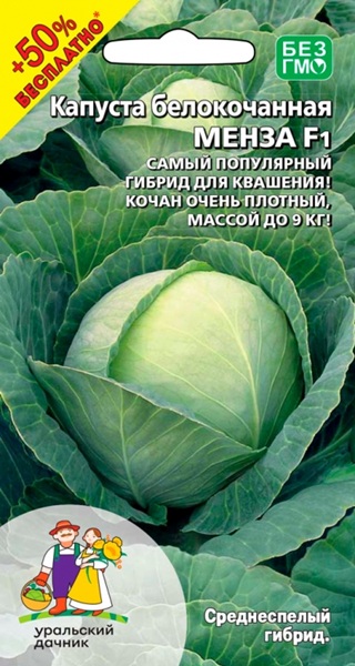 Капуста б/к Менза F1 15шт+8шт (+50%БЕСПЛАТНО /очень популярная среднеспелая