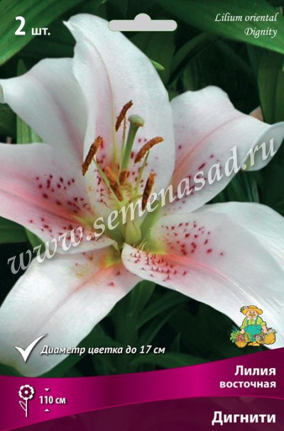 Дигнити - восхитительный сорт. Высота растения 110 см. Цветок КРУПНЫЙ, с густым сладким ароматом, лепестки белые с малиновой полоской посередине, в горле розово-красный крап. Лепестки широкие с загнутыми краями.
