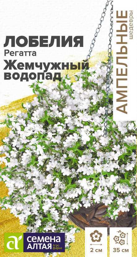 Однолетние лобелии серии Regatta являются эталоном среди ампельных лобелий. Они сочетают в себе экстрараннее обильное и продолжительное цветение и широкий спектр окрасок. Растение сначала формирует сильноветвистый кустик высотой 15-20 см, и затем продолжающие свой рост побеги начинают ниспадать каскадами ярких цветов, достигая длины до 35 см. В период цветения все растение покрыто одиночными, до 2 см в диаметре, жемчужно-белыми цветками. Отлично подойдет для выращивания в подвесных кашпо и балконных ящиках, вазонах и больших контейнерах. Светолюбивое, теневыносливое и влаголюбивое растение, достаточно холодостойкое. Предпочитает незатенённые места с хорошо дренированными супесчаными и суглинистыми почвами средней влажности. Посев на рассаду в конце февраля-начале марта в ящики с лёгким грунтом. Семена заключены в мультидраже, их равномерно распределяют по поверхности влажного субстрата, слегка вдавливая в него. Не заглубляйте семена, так как для прорастания им нужен свет.