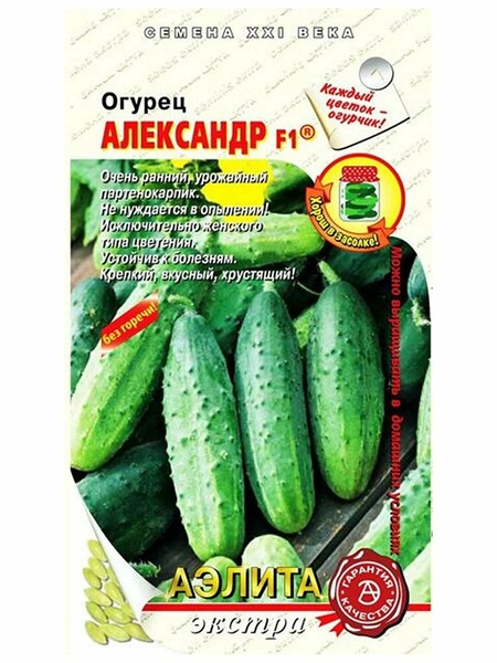Растения среднеплетистые. Зеленец хрустящий, крупнобугорчатый, ярко-зеленый, овально-цилиндрический, массой 70-90 г, длиной 8-10 см, соотношение длины к диаметру 3,4:1, отличных вкусовых качеств, без горечи.
