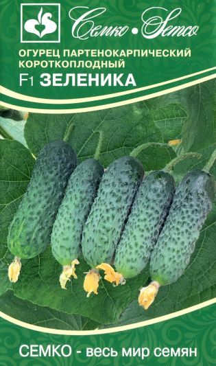 Огурец Зеленика F1 - ранний партенокарпический гибрид для защищенного и открытого грунта корнишонного типа, который можно выращивать как в теплицах, так и в открытом грунте. От всходов до начала плодоношения 39–41 день. Растение вегетативно-генеративного типа развития. Плоды цилиндрические, темно-зеленые, длиной 9–11 см, массой 85–105 г, среднебугорчатые, белошипые, не перерастают, без горечи. В одном узле формирует 1–3 плода. Отличается ранней и дружной отдачей урожая, высокой товарностью плодов в течение всего периода плодоношения. Огурец Зеленика F1 относительно устойчив к стрессовым условиям и перепадам температур. Вкусовые качества плодов отличные. Транспортабельность хорошая. Гибрид также устойчив к кладоспориозу (Ccu), настоящей мучнистой росе (Pх) и вирусу огуречной мозаики (CMV). Рекомендуется для выращивания во всех типах теплиц, а также в открытом грунте. Используется для свежего потребления, засолки и консервирования. Урожайность в теплице свыше 25 кг/м2, открытом грунте 12–14 кг/м2.