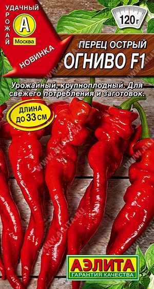 Среднеспелый, обильно плодоносящий гибрид. Первый урожай собирают на 120-130 день после всходов. Рекомендуется для выращивания в защищенном грунте. Кусты мощные, с интенсивным ростом, высотой около 1 м. Плоды крупные, веретеновидные, длиной 30-33 см, диаметром 3-3,5 см, массой 100-120 г. Вкус среднеострый. Перцы прекрасно подходят для приготовления овощных салатов, рагу, супов, мясных блюд, консервирования и маринования. Гибрид высокоустойчив к болезням культуры.