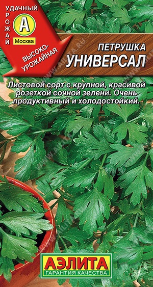 Среднеспелый холодостойкий листовой сорт. Отличительной особенностью является крупный, красивый лист и продолжительный период уборки зелени. От всходов до первой массовой срезки около 60 дней. Розетка полувертикальная, с большой продуктивностью зеленой массы. Листья высокоароматичные, с крупными долями, на длинных, толстых черешках. Используются в домашней кулинарии в свежем и сушеном виде.