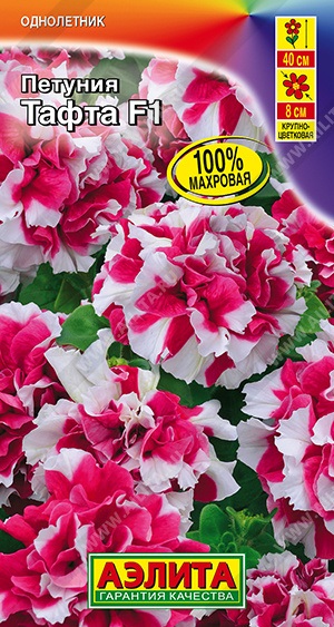 100% махровый гибрид обильноцветущей петунии иностранной селекции. Формирует хорошо ветвящийся кустик высотой 25-40 см, шириной 25-30 см, с крепкими побегами. Роскошные цветки диаметром 6-8 см почти полностью скрывают листву. Растения сравнительно неприхотливые и очень декоративные. Рекомендуются для выращивания в кашпо, балконных контейнерах, в ковровых посадках на клумбах и в бордюрах.