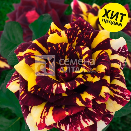 Дополнительно: Махровые цветки вишнево-бордовой окраски покрыты желтыми полосками. В зависимости от почвенно-климатических условий основной цвет розы может корректироваться в оттенке, также от насыщенно-желтого до бледно-желтого может изменяться цвет полосок на лепестках. На одном цветке полоски могут быть распределены неравномерно: по всем лепесткам или встречаться только на отдельных лепестках. Возможно использование в срезки для составления миниатюрных букетов. Шикарно смотрится в бордюрных групповых посадках.