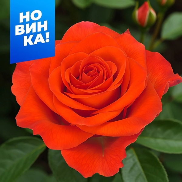Цветы бокаловидные, крупные, густомахровые, яркой оранжево-красной окраски. Относится к повторноцветущим, цветет обильно, продолжительно, с ярким и приятным ароматом. Сорт представляет собой компактный куст с темно-зелеными глянцевыми листьями. Имеет высокий иммунитет к вредителям и болезням, неприхотлив к условиям выращивания, прекрасно подстраивается под любые климатические условия.