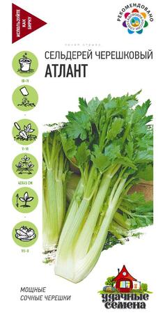 Среднеспелый (150–170 дней от всходов до технической спелости) сорт черешкового сельдерея. Розетка листьев прямостоячая, диаметром 45–53 см, высотой 40–45 см. Лист средний, зеленый, сильноглянцевый. Черешок среднего размера, зеленый, поверхность слаборебристая. Масса черешков с одного растения 300–400 г. Выращивают рассадным способом. Семена высевают, не заделывая в почву. Всходы начинают появляться через 2–3 недели. Для улучшения качества черешкового сельдерея его отбеливают. Для этого за две недели до уборки черешки осторожно сдвигают и обертывают плотной бумагой. Рекомендован для употребления в свежем виде, консервирования и в качестве специи в различные блюда. Урожайность 2,8–3,3 кг/м².