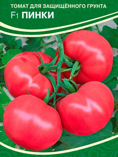 Томат Пинки F1 - ранний индетерминантный розовоплодный гибрид томата для защищенного грунта. От всходов до созревания 90–95 дней. Растение среднеоблиственное. Первое соцветие закладывается после 9–11 листа. Расстояние между кистями 15–18 см, в кисти завязывается 5–6 плодов. Плод плоскоокруглый, массой 220–250 г, плотный, насыщенного розового цвета, с раскрытыми чашелистиками. Хорошо завязывает плоды при любых погодных условиях. Вкус и товарность высокие, транспортабельный.