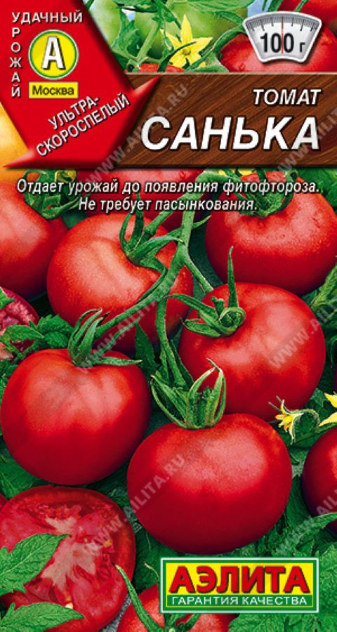 Ультраскороспелый сорт для открытого грунта и малогабаритных пленочных теплиц. От всходов до начала плодоношения 79-85 дней. Растения детерминантные, компактные, высотой 40-60 см. Не пасынкуются. В простых кистях по 4-5 плодов. Томаты округлые, плотные, выровненные, массой 80-100 г, устойчивые к растрескиванию. Вкус сладкий с небольшой кислинкой. Плоды используются для свежего потребления, цельноплодного консервирования и переработки на томатопродукты. Продуктивность растения в о/г 2-2,5 кг, под пленкой – 3-3,5 кг. Сорт устойчив к недостаточной освещенности и пониженным температурам. Благодаря скороспелости уходит от поражения фитофторозом.