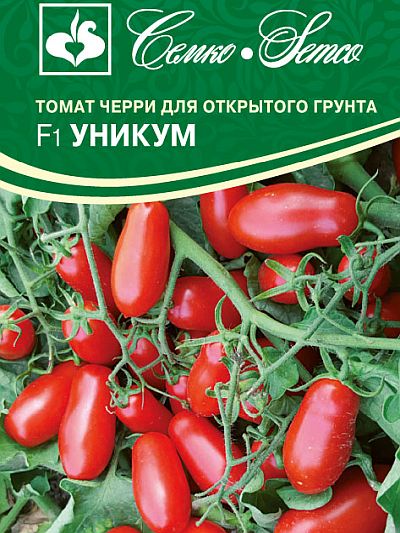 Томат Уникум F1 - ранний, детерминантный гибрид томата черри для открытого грунта. От всходов до созревания 80-85 дней. Растение с хорошим ростом, штамбовое, хорошо облиственное. Томаты цилиндрические, выровненные по форме, тёмно-красные, массой 25-30 граммов. Помидоры очень устойчивы к растрескиванию.
