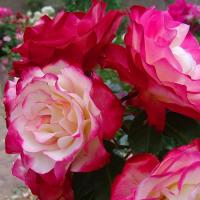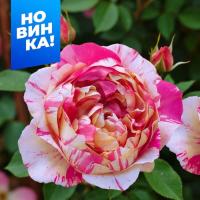 Роза Инес Састр - плетистая (клаймбер)/120-180см/насыщенно-розовая с бело-кремовыми штрихами