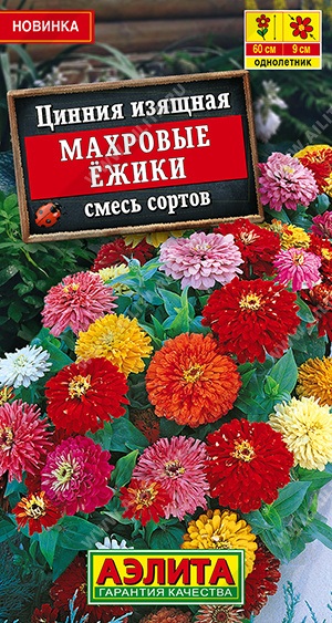 Красочная смесь махровых цинний с кактусовидными* соцветиями, достигающими диаметра 8-9 см. Растения представляют собой мощные кустики с крепкими цветоносными побегами длиной около 50-60 см. Крупные цветки характеризуются особенной яркостью и пышностью, отлично сохраняются в срезке. Цинния незаменима в рабатках и клумбах. Смесь может использоваться в цветниках в качестве сольной культуры, наполняя сад широкой палитрой летних расцветок. Ценится за неприхотливость, быстрое развитие, раннее цветение, которое длится до середины осени.