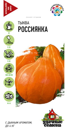 Раннеспелый холодостойкий сорт. Первые плоды созревают на 90-100 день после появления всходов. Растение средней мощности, среднеплетистое. Плод округлый, массой 1,9-4,0 кг. Мякоть ярко-оранжевая, нежная, сладкая, с дынным ароматом. Сорт урожайный, с одного растения можно получить до 20 кг плодов. Вкусовые качества хорошие, использование универсальное. Выращивается как рассадным способом, так и прямым посевом в грунт. Хорошо отзывается на внесение органических удобрений.